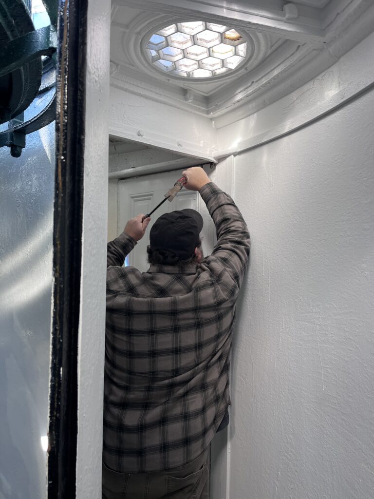 And in the meantime, we are open for the season and happy to have the door back in place “[t]o prevent injurious draughts of air from reaching the lantern from the stairs and through the parapet doorway.”
