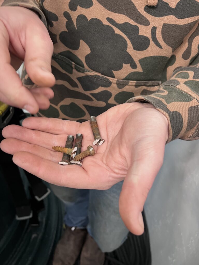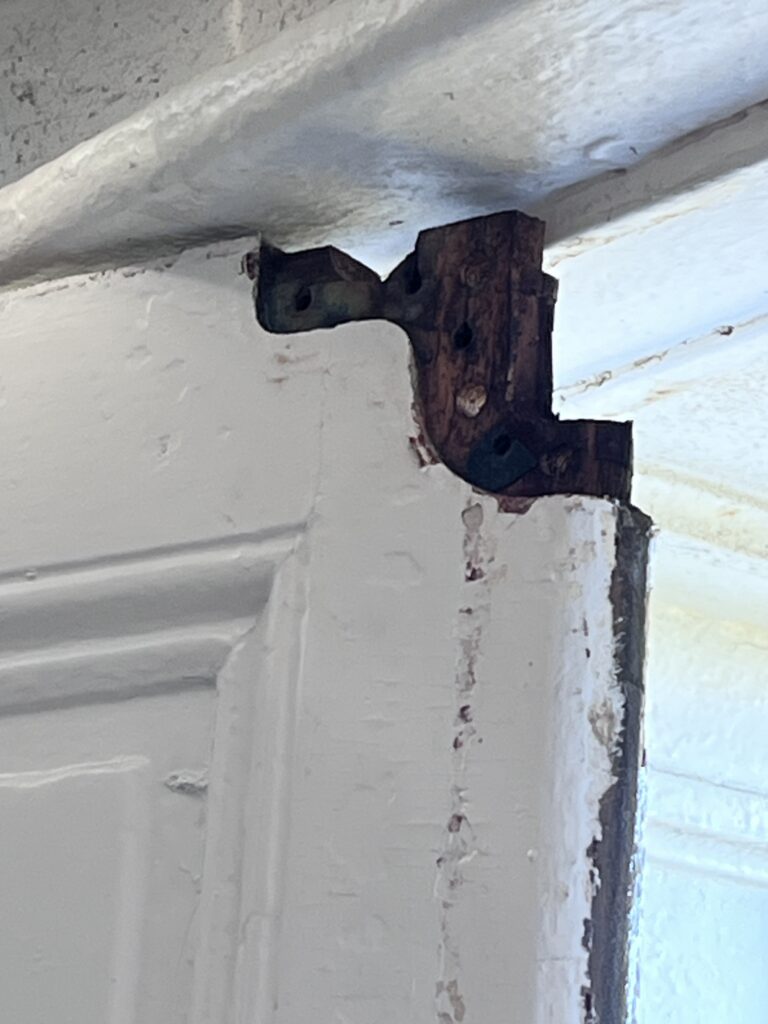 “It was so exceptional and heavy duty that it withstood 150 oceanfront years, another reason the screws were likely wrought and only one rusted and one broke – all others I cleaned up and reused, but also interestingly they weren’t bronze like the knuckles of the hinges. Plus it’s wild how wrought went into bronze and didn’t oxidize so it actually HAD to be wrought. Otherwise we know contact with dissimilar metals would have rusted the iron.” -Chris Thompson