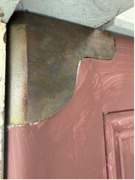 Once the door was off and some paint removed, we could see that indeed the jamb for the door was brass.